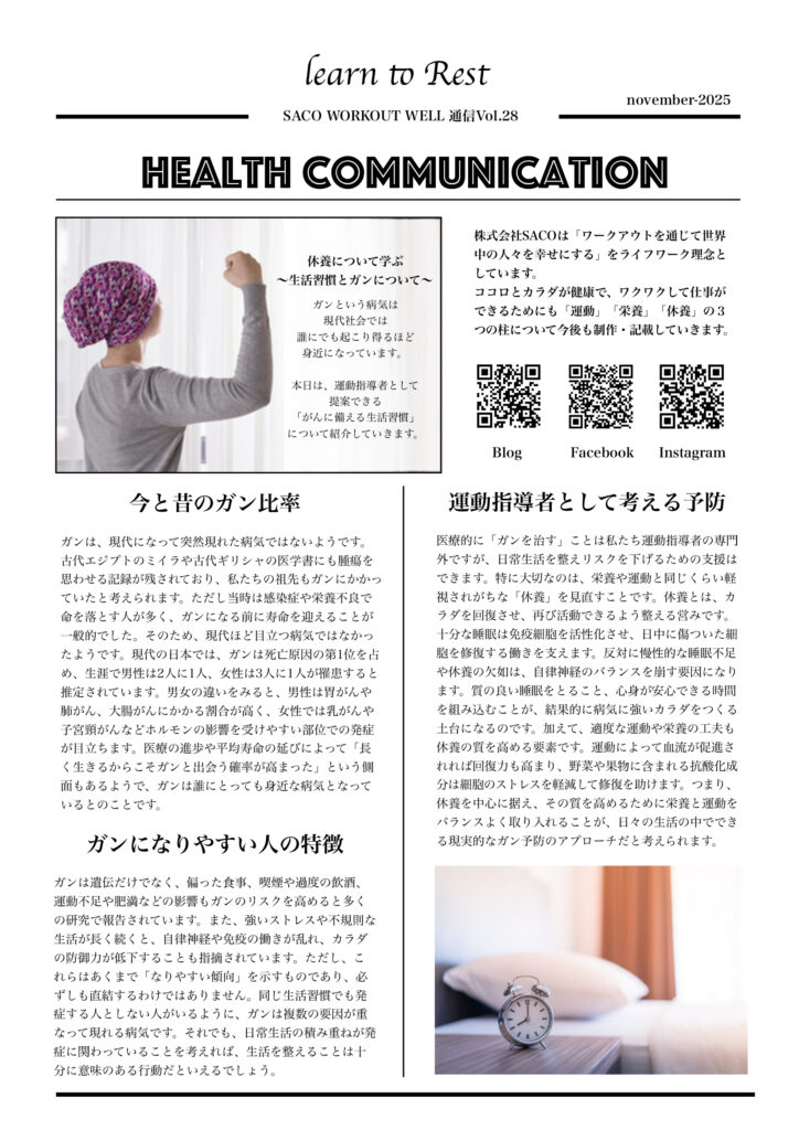 しかし、近年は研究が進み、ガンの背景には 生活習慣・睡眠・ストレス・運動不足 など、日々の行動が深く関わっていることがわかっているようです。