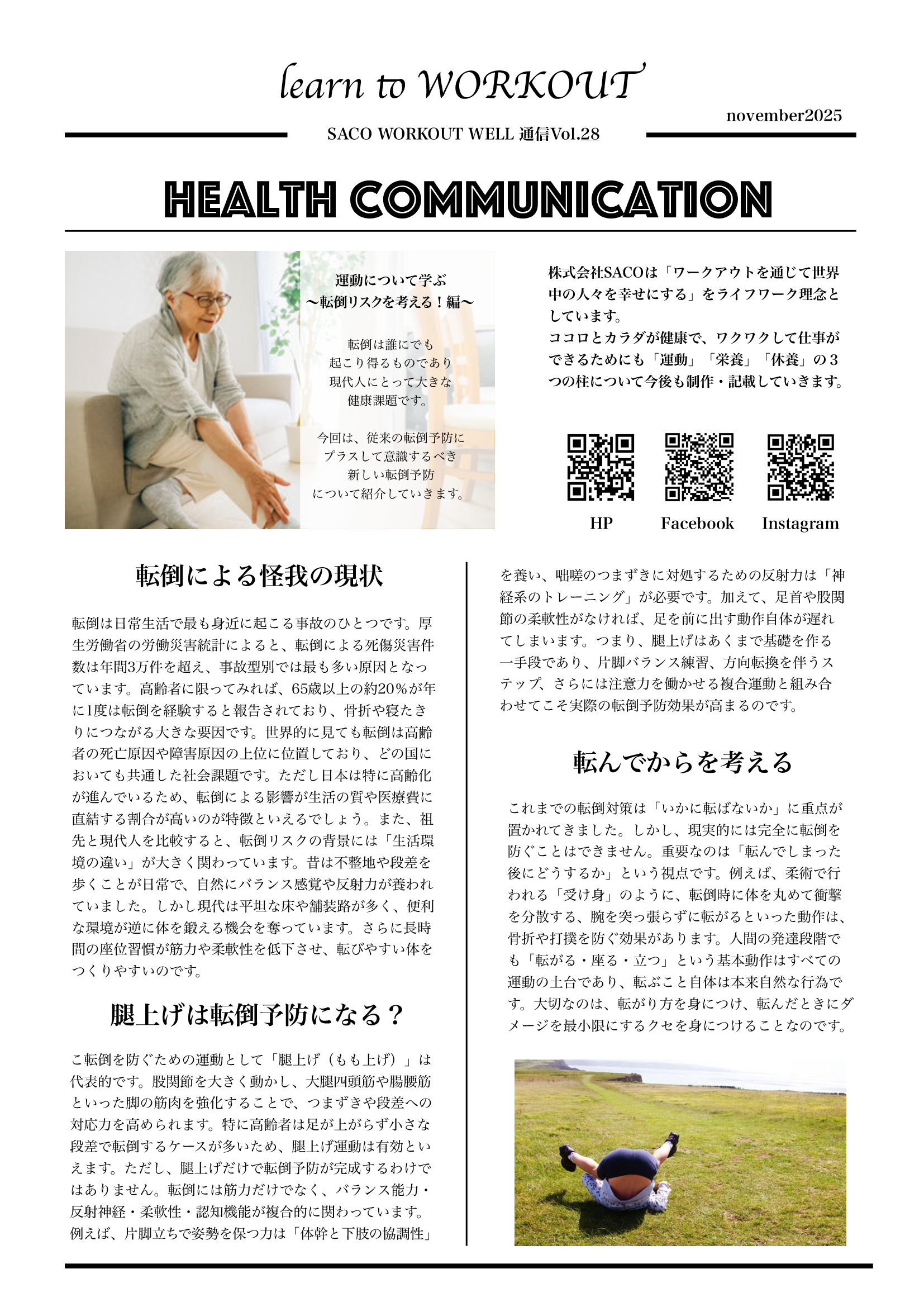つまり、「転ばないこと」はもちろん、「転んだ後も動ける身体」を準備しておくことが重要なのです。