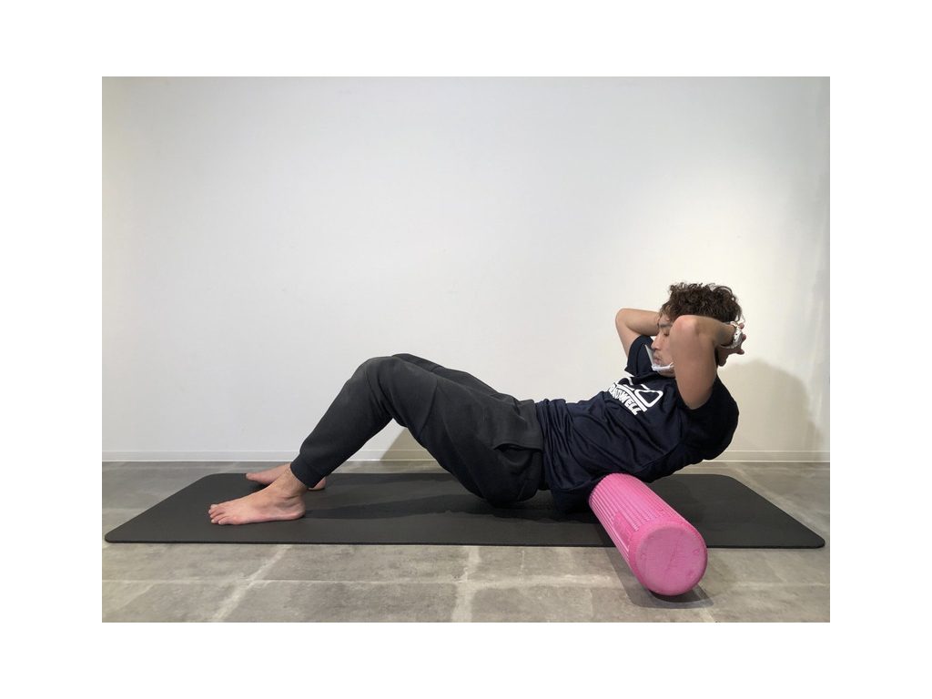 ・フォームローラーに肩甲骨付近を乗せ、肩甲骨〜腰あたりまで上下にゴロゴロと動かす