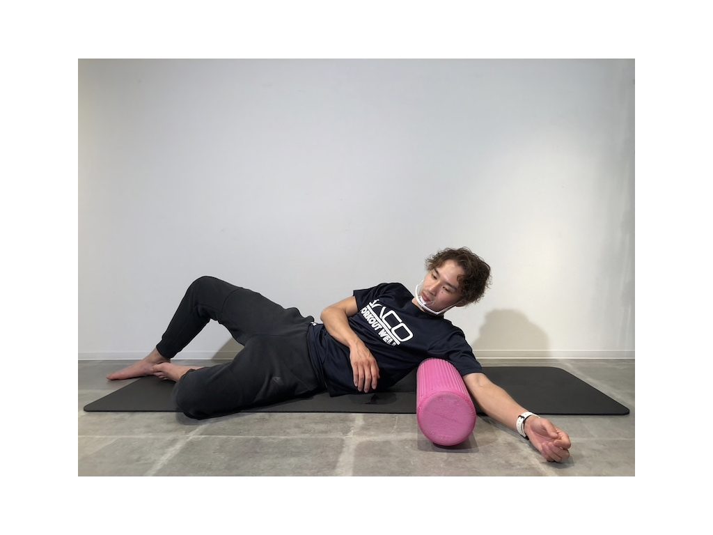 ・フォームローラーに脇の下を乗せ、上体を前後に動かす